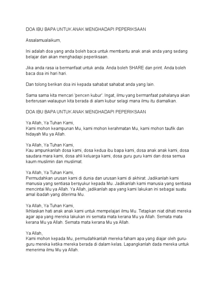 Doa Ibu Bapa Untuk Anak Menghadapi Peperiksaan Pdf